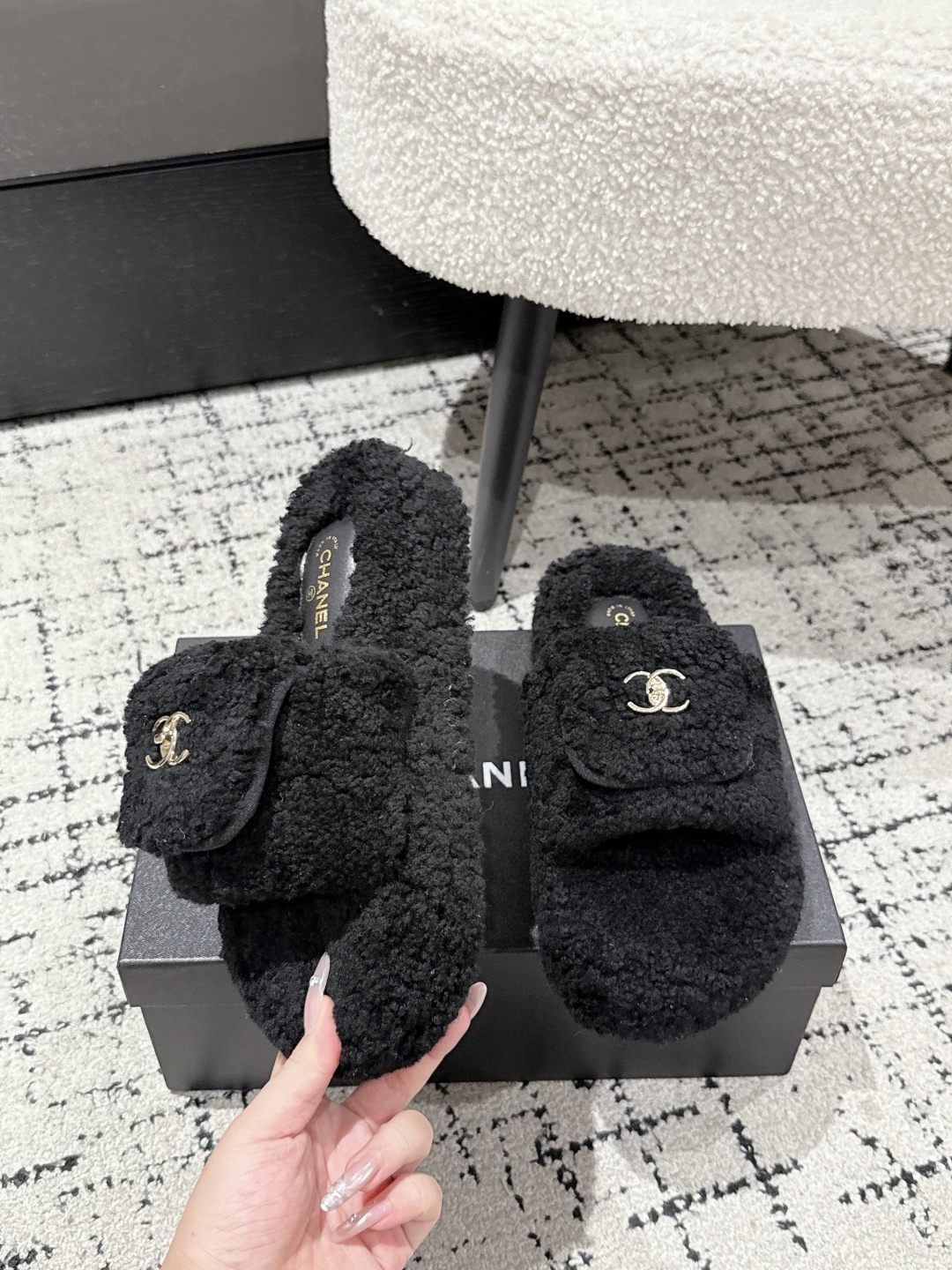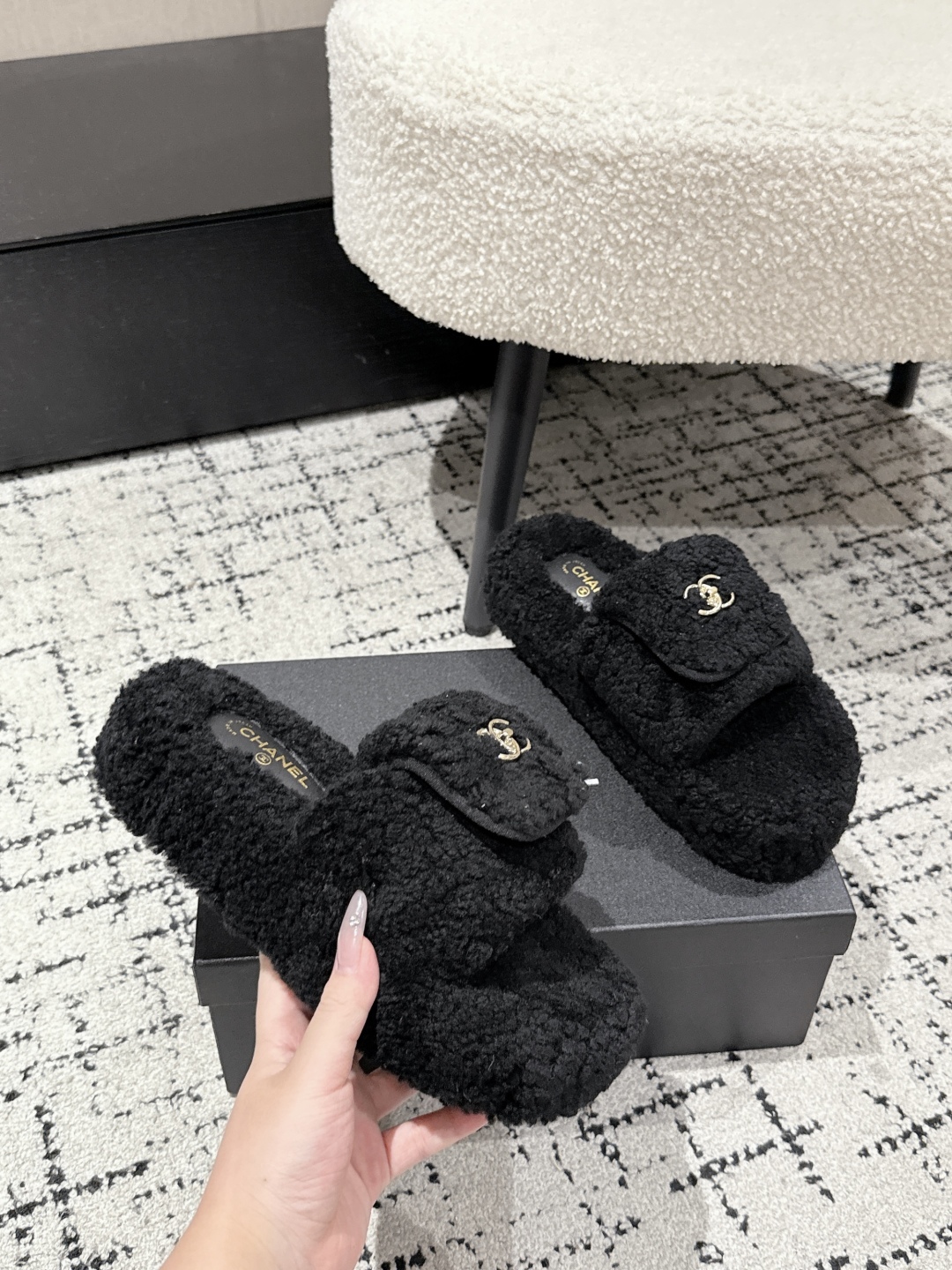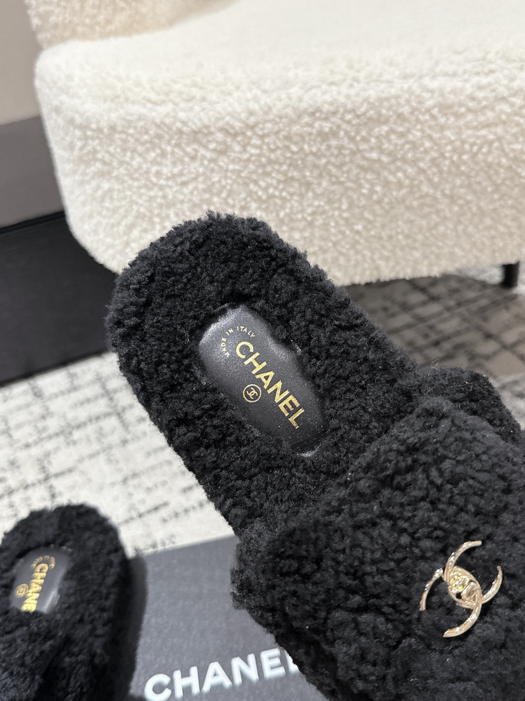 Chanel Shearling CC Logo Slippers - Cozy & Chic Fall/Winter Style