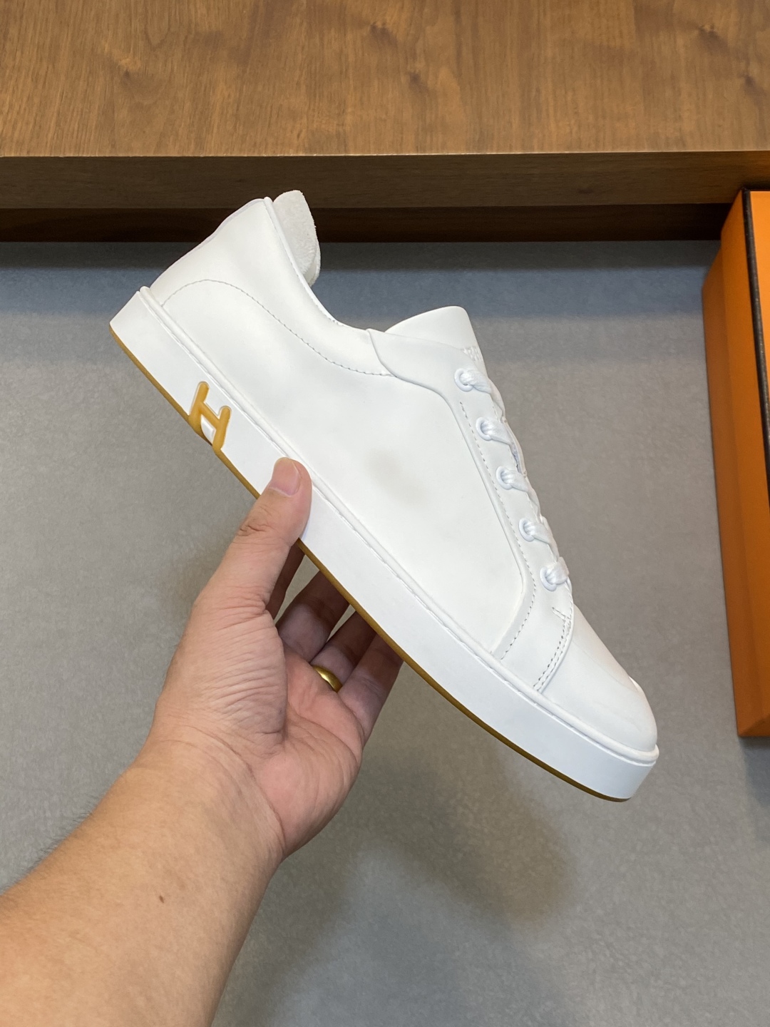 Introducing the Hermès Kiddy sneakers, designed for a sleek and stylish urban appearance.