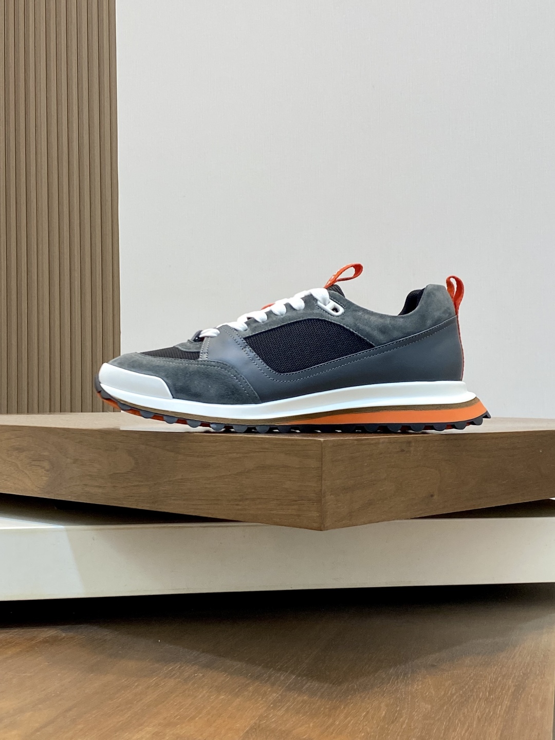 Crafted with a blend of high-tech twill, calfskin, and suede goatskin, the Hermes Leader sneakers offer a modern twist on classic athletic footwear. These sneakers are designed with a lightweight, geometric sole, perfect for navigating the urban landscape with style and ease.