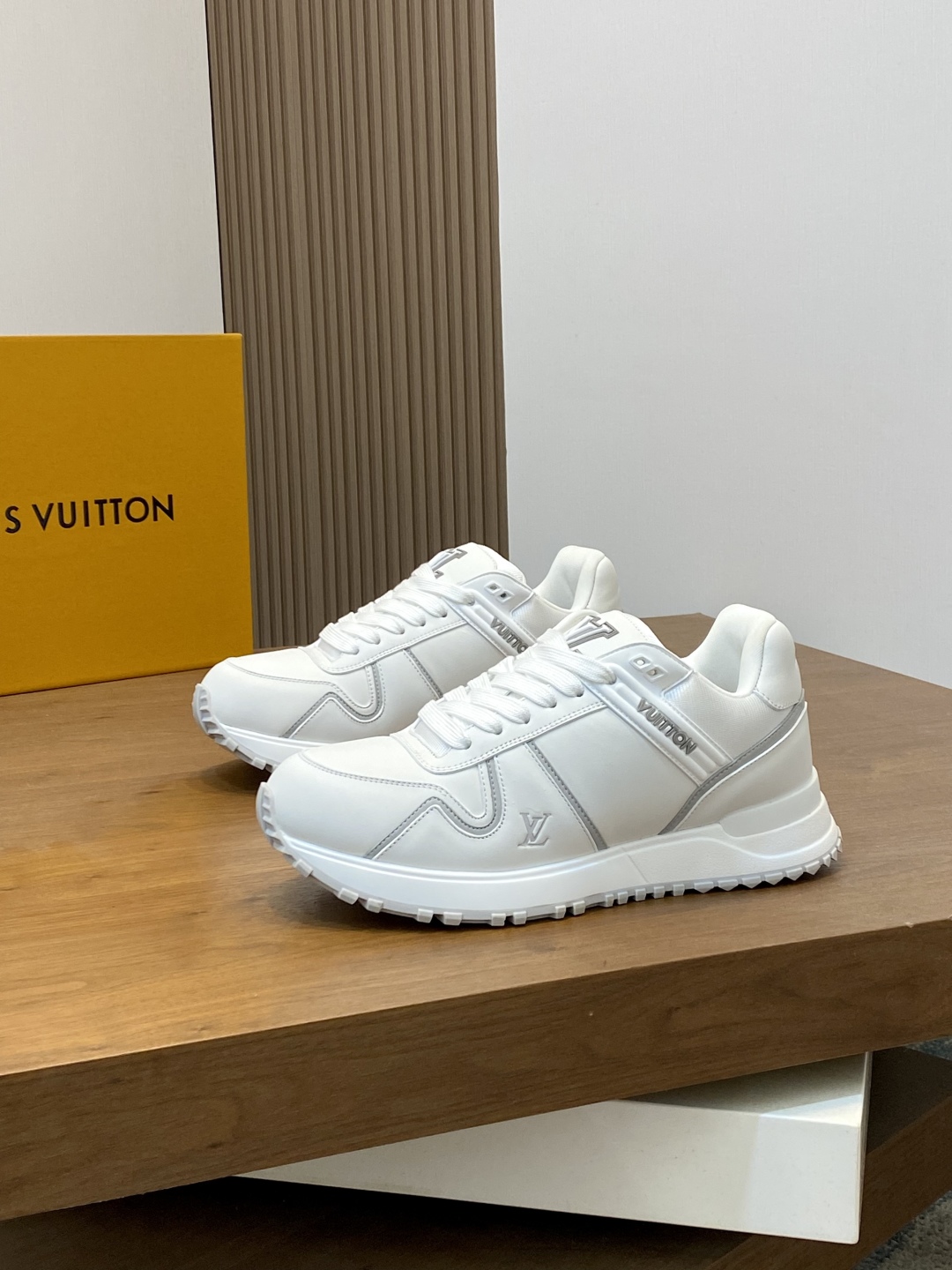 Step into style with Louis Vuitton Run Away Maxi Sneakers featuring a smooth leather upper, iconic LV details and rubber outsole.