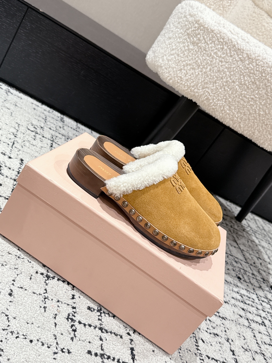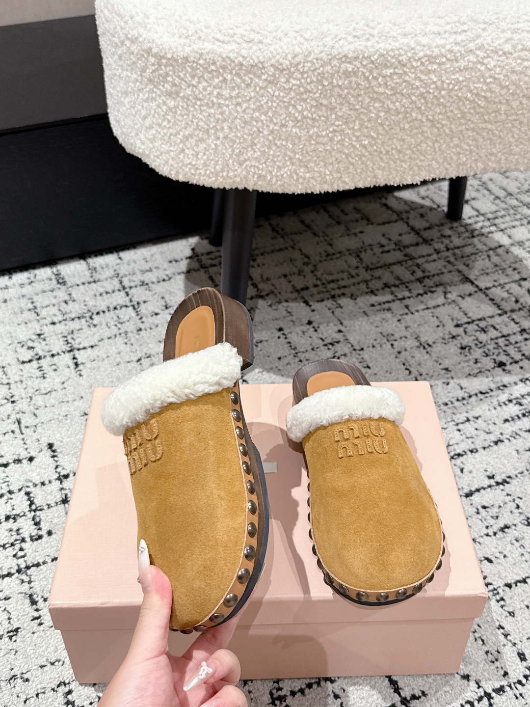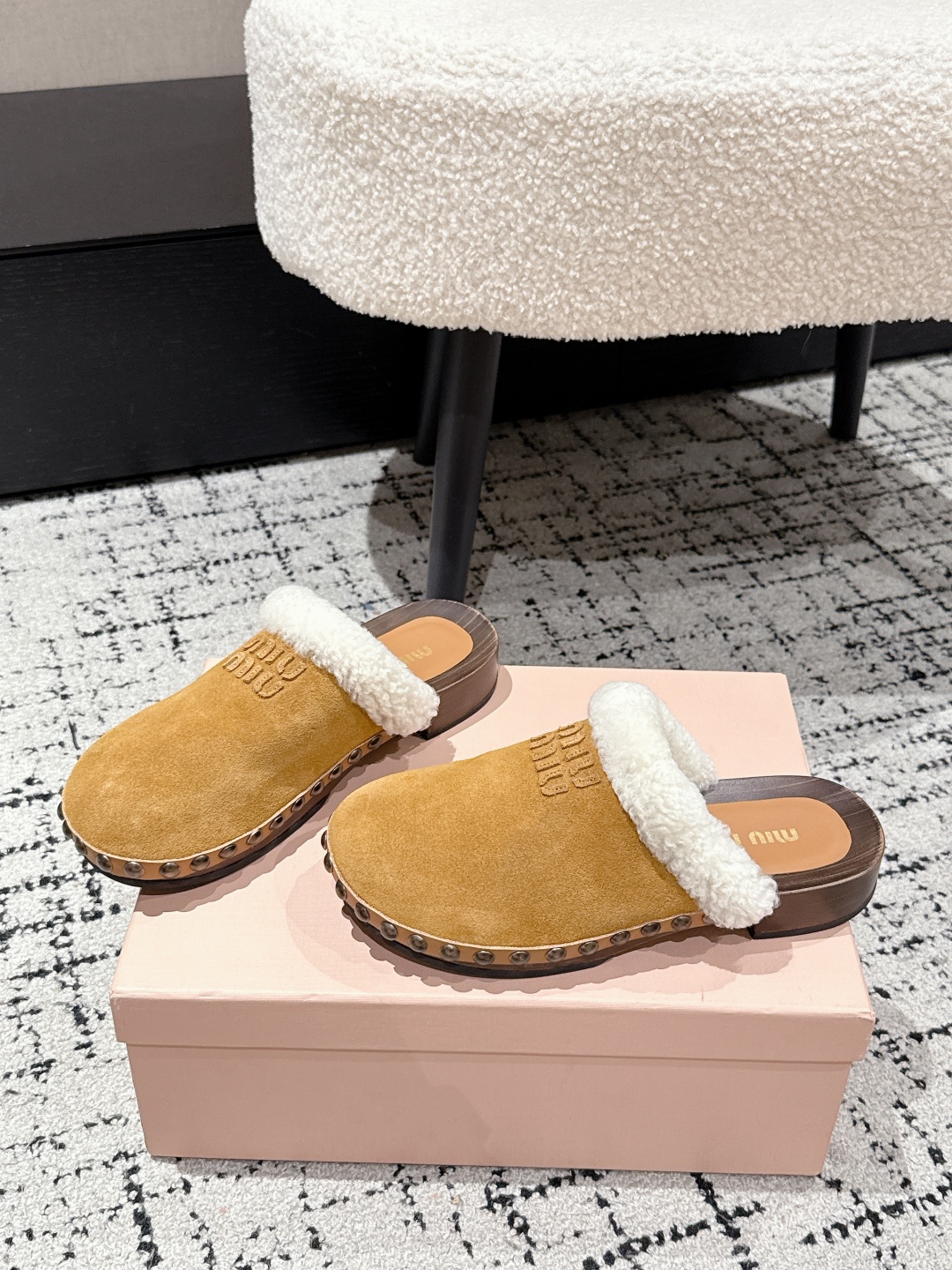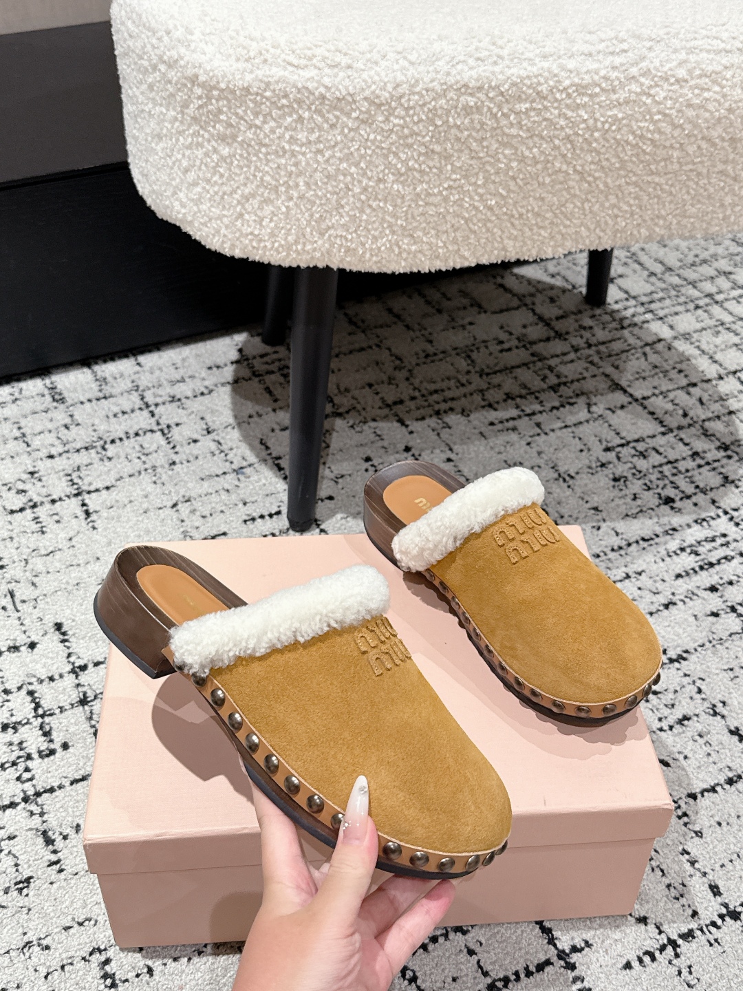 Miu Miu 2025 Fall/Winter Furry Suede Clogs - Comfortable and Stylish