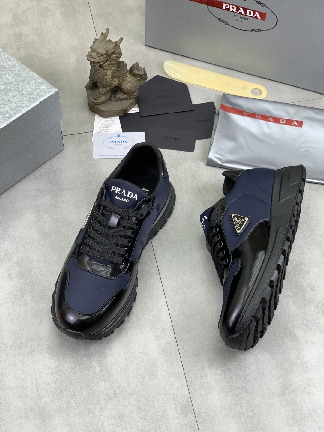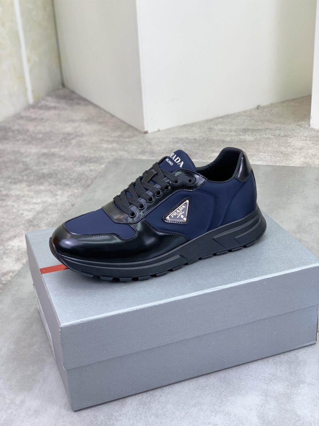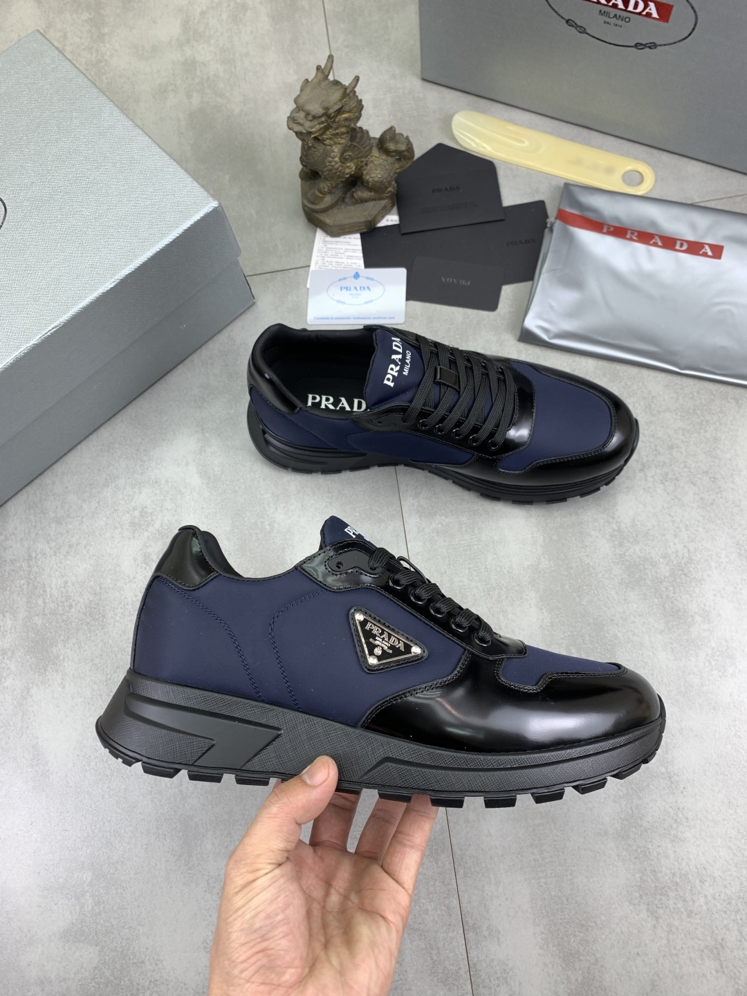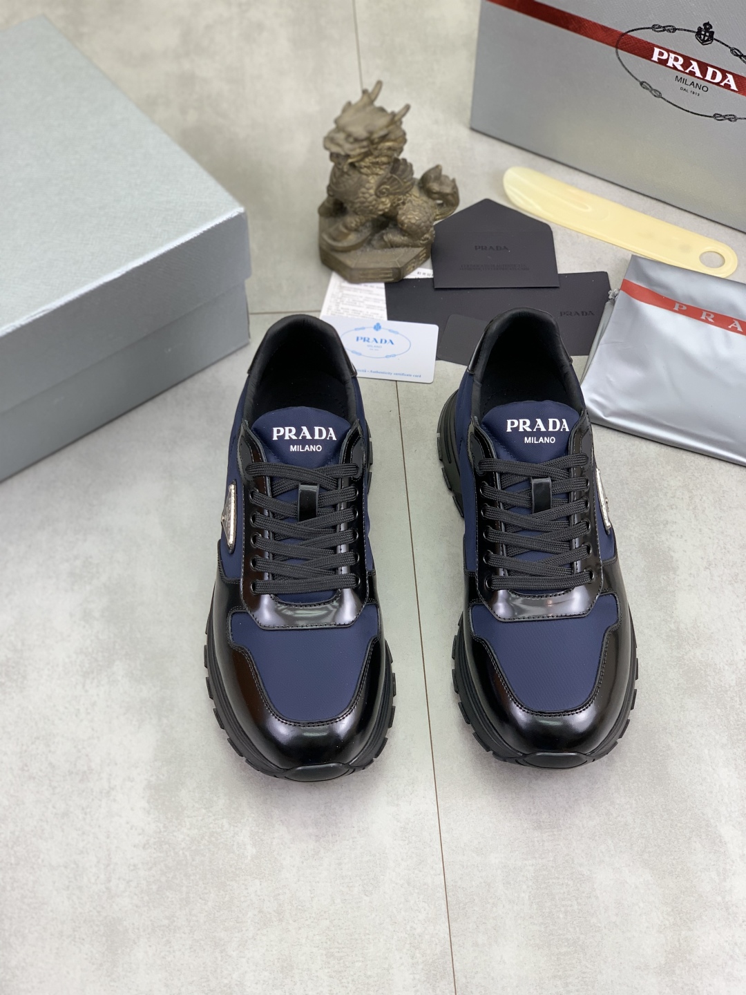 Prada Men's Fashion Sneakers Cowhide Patchwork Lace-up Casual Shoes